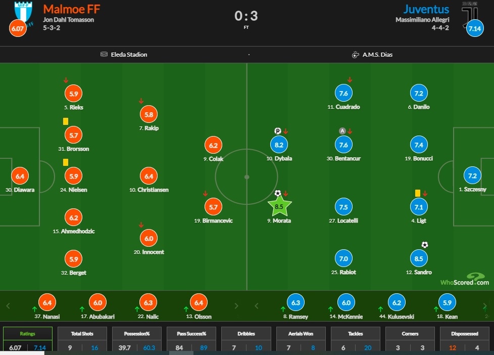 В составе «Ювентуса» отличились: Алекс Сандро, Пауло Дибала и Альваро Мората, который получил самую высокую оценку от портала.