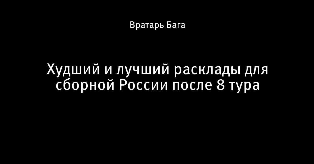 Давайте представим, какие лучшие и худшие исходы после 8 тура могут быть для сборной России. Внизу представлена турнирная таблица после 6 тура (фото не удалось загрузить)