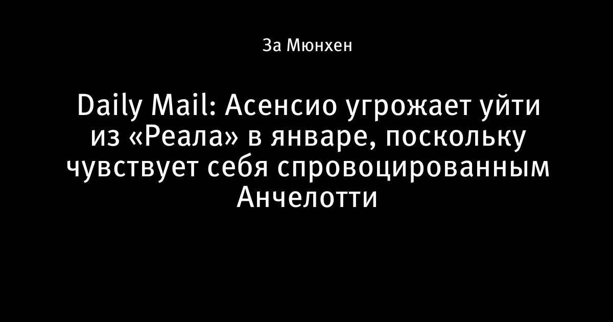 Далее в отчете издания утверждается, что Асенсио «недоволен ролью, которую он играет при Анчелотти», и он настаивает на уходе из клуба после того, как в январе снова откроется трансферное окно. Даже в том случае, если тренер даст ему больше игрового времени в течение сезона.