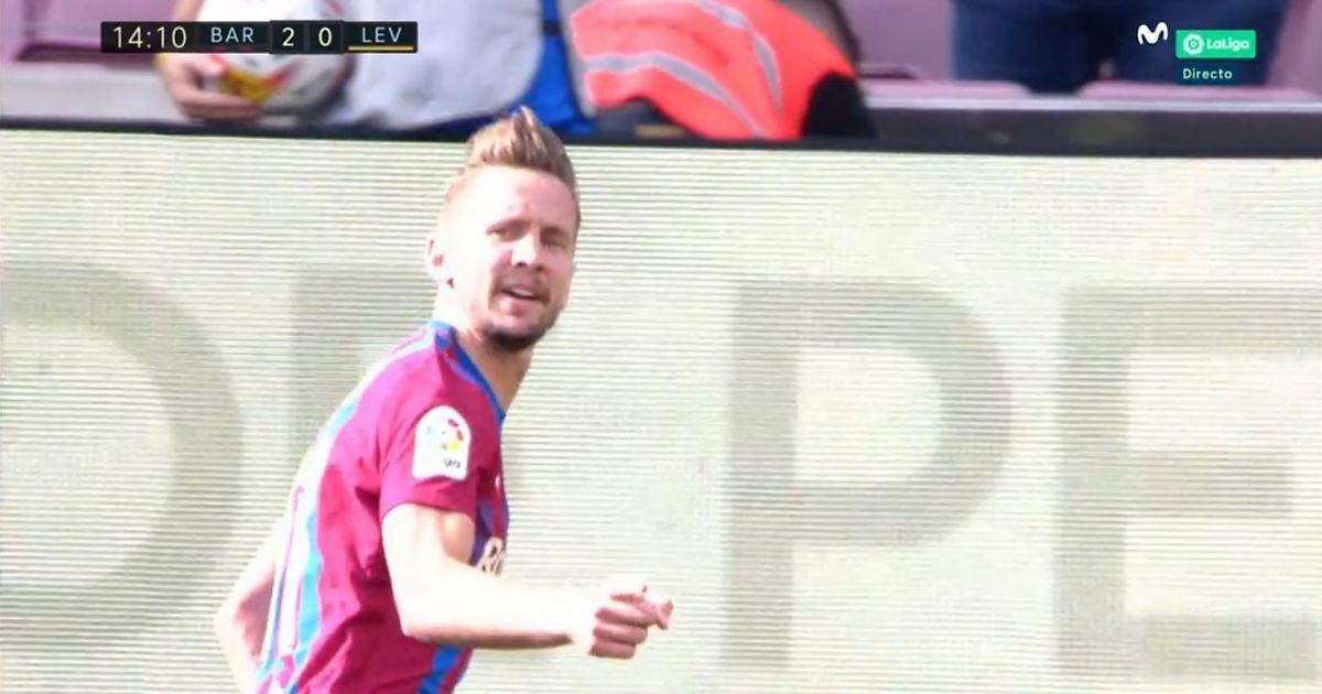 Люк де Йонг забил второй гол «Барсы» в матче с «Леванте» после паса Мемфиса Депая.