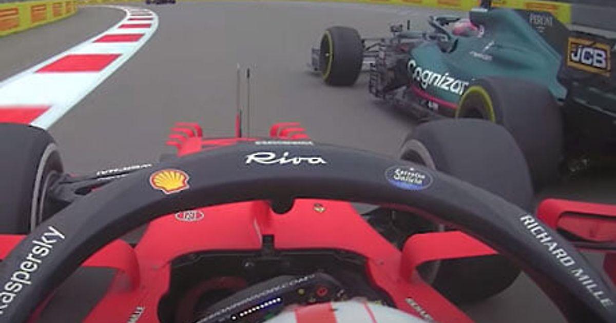 Леклер, казалось бы, уже выиграл точку торможения, но Феттель шикарно разместил болид: