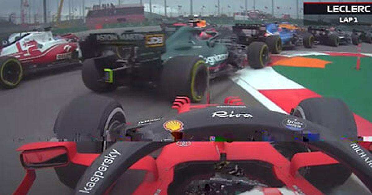 Сверхрисковый старт Леклера в Сочи: взлет на 7 мест, опаснейший нырок в первый поворот, метр до аварии с Феттелем