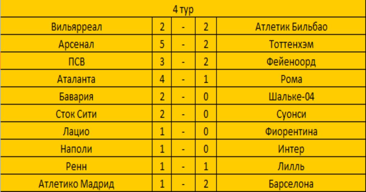 Итоговые результаты матчей в Лигах и Дивизионах: