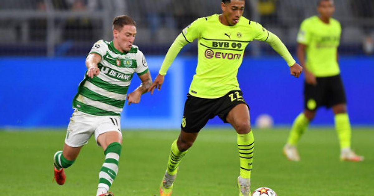 Тем не менее, Дортмунд быстро вспомнил о своём статусе фаворита и устремился к воротам «Спортинга». «Шмели» хорошо перемещались по полю, игроки чувствовали друг друга, создавая всё более опасные комбинации. Отметим Марко Ройса, который несколько раз заставил понервничать голкипера соперника. В конце первого тайма высокий прессинг привёл к результату: на 37-й минуте Беллингем получил мяч от партнёра и одним движением отдал проникающий пас на Малена.