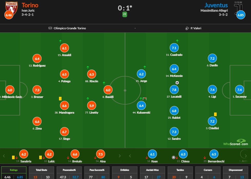 🔥Локателли лучший, Кин худший. Оценки игроков «Ювентуса» за матч с «Торино»