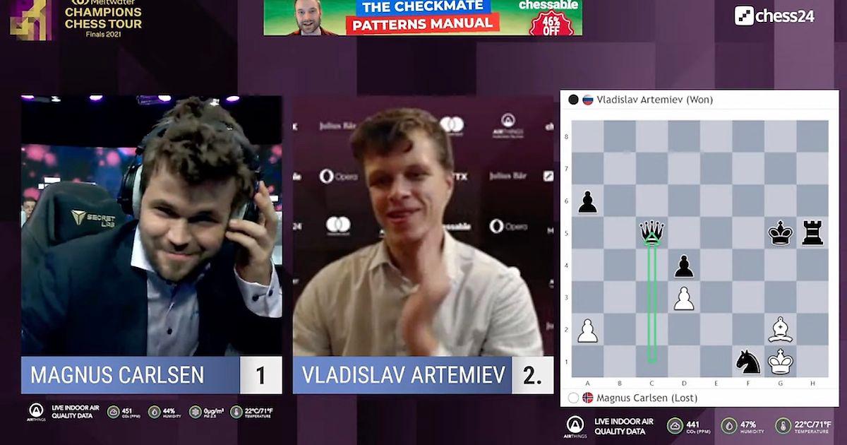 23-летний Владислав Артемьев, представляющий Татарстан, на минувшей неделе сотворил одну из главных сенсаций в мире шахмат: он переиграл действующего обладателя мировой короны – Магнуса Карлсена. Победу российского гроссмейстера точно не назвать случайностью: он одержал верх в противостоянии, которое состояло из четырёх партий. Примечательно, что Магнуса удалось переиграть на онлайн-турнире Champions Chess Tour, который лучший шахматист мира сам и организовал. Турнир завершился в начале этой недели. Артемьев в заключительном 9-м туре обыграл шахматиста из Нидерландов Аниша Гири и в итоговой турнирной таблице занял 6 место. Победителем Champions Chess Tour стал Карлсен.