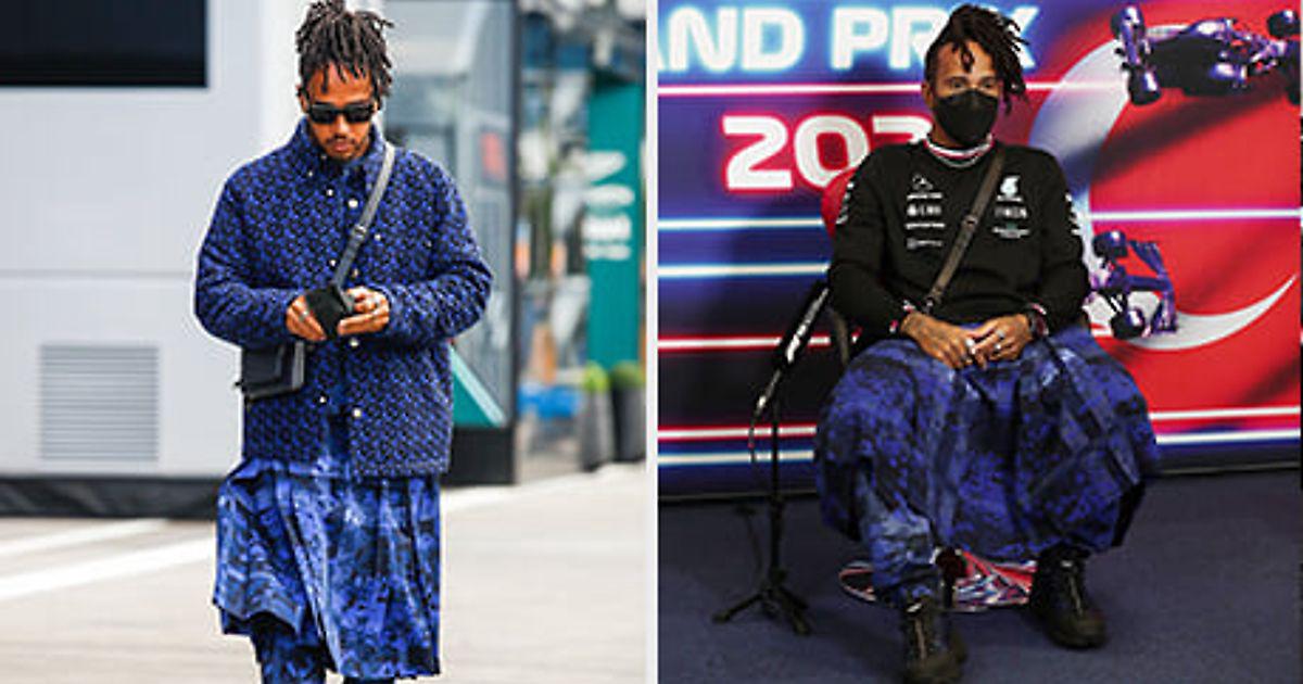 Позже Льюис сменил верхнюю часть наряда на командую форму (по требованию регламента ФИА) и объяснил журналистам выбор образа: «Это довольно дерзко. Мне нравится то, что делает Burberry, и просто нравится этот наряд. Каждый может носить то, что хочет. Не все поймут, но это нормально. Надеюсь, в конце концов, люди станут более открытыми и позволят окружающим быть собой».