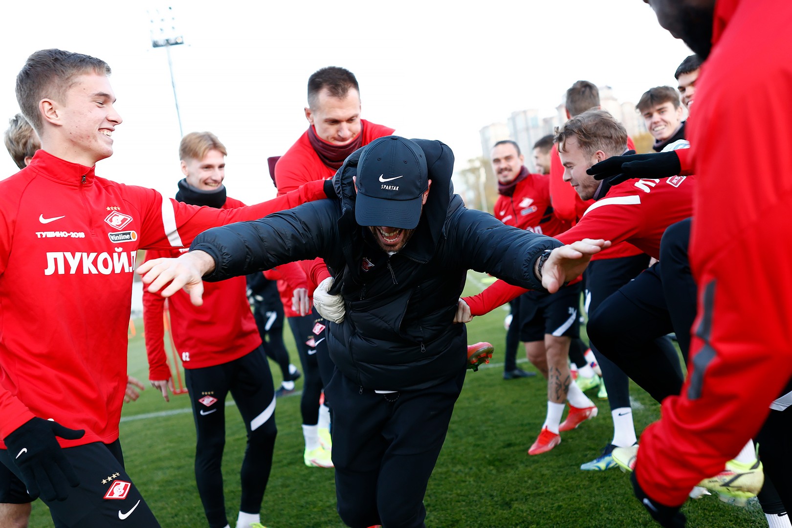 Перед началом занятия команда поздравила с 30-летием врача «Спартака» Глеба Чернова.