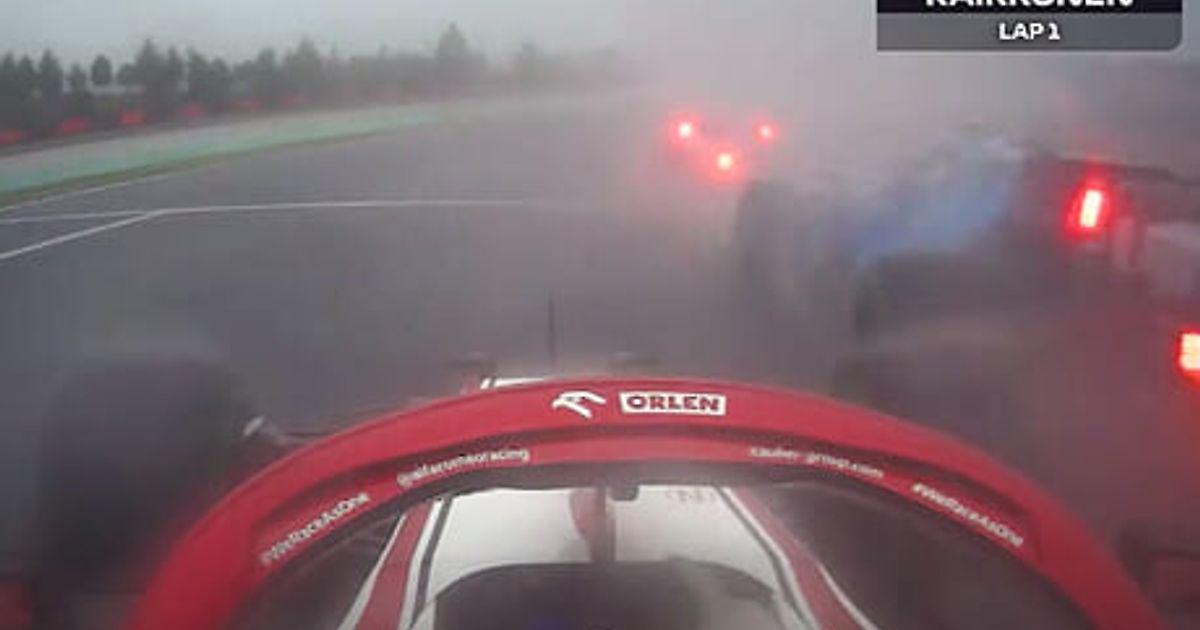 Райкконен технично увернулся от аварии в первом повороте на мокром треке – и тут же обогнал троих. Оценка «Ф-1» – 100 баллов