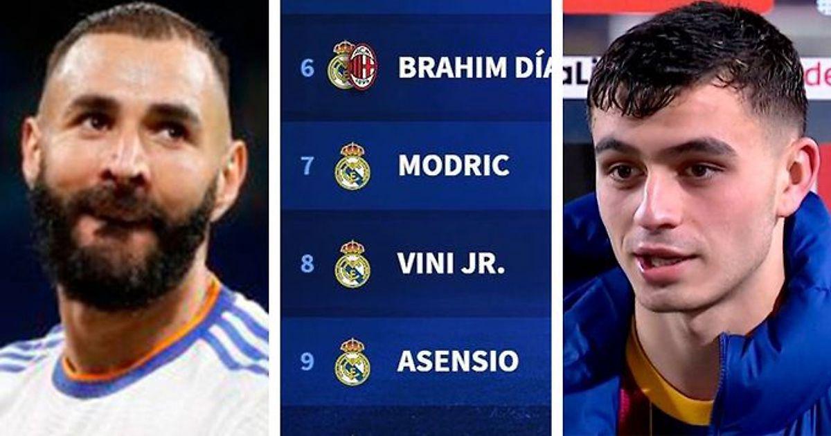 Правда, Педри делить это звание с Феде Вальверде и Каримом Бензема.