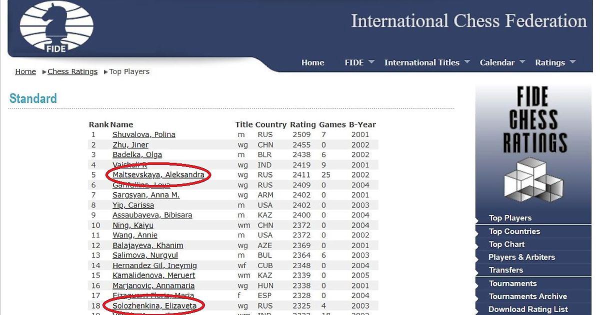 Если мы посмотрим на список, то увидим, почему Марку Владимировичу не хочется (а может, нельзя? Может так велел президент ФШР?) называть все фамилии. Потому, что тогда придётся назвать фамилии Александры Мальцевской и Елизаветы Соложенкиной.