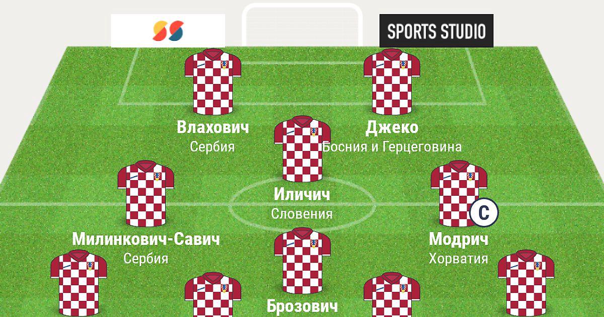 Полузащита: Модрич (Хорватия), Милинкович-Савич (Сербия), Брозович (Хорватия), Ковачич (Хорватия), Пьянич (Босния и Герцеговина), Перишич (Хорватия), Костич (Сербия), Влашич (Хорватия), Ребич (Хорватия), Ратич (Сербия), Тадич (Сербия), Иличич (Словения).