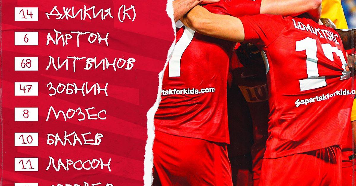 С первых минут сыграют: Максименко, Кофрие, Жиго, Джикия (к), Мозес, Зобнин, Литвинов, Айртон, Бакаев, Ларссон, Соболев.