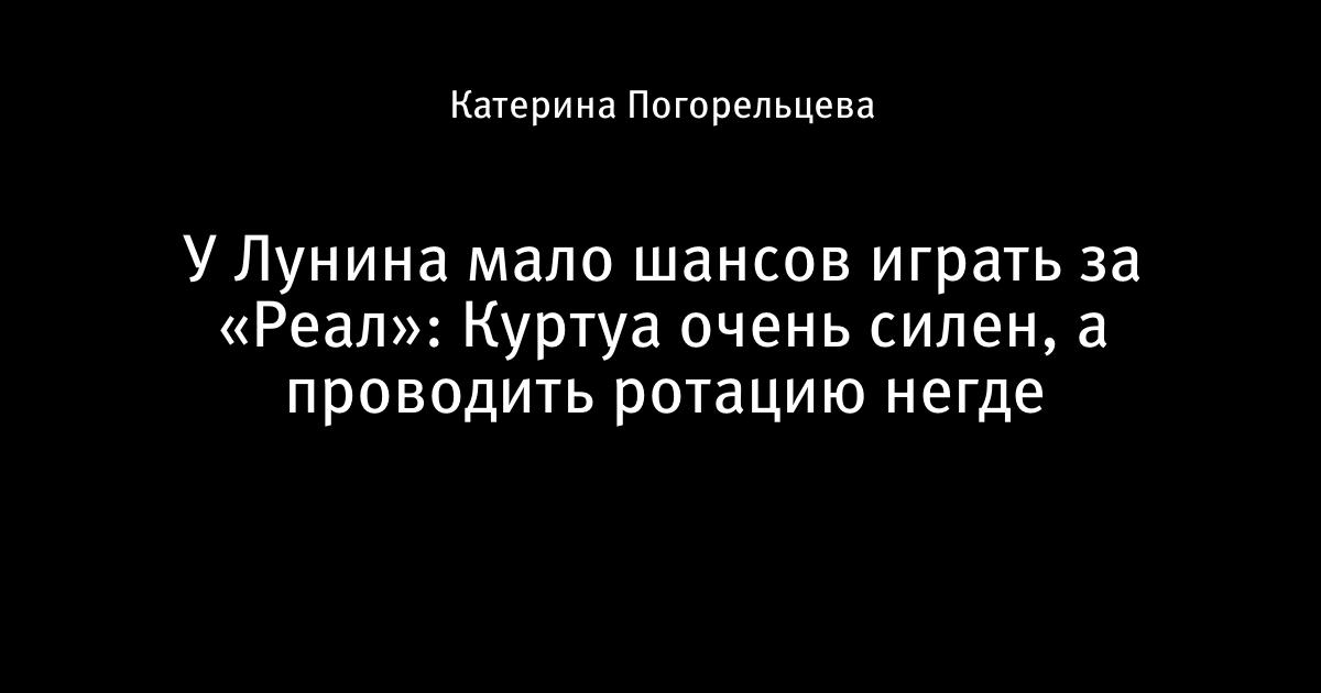 Во многом Лунину не повезло с турнирными раскладами в прошлом сезоне. В групповом этапе Лиги чемпионов «Реал» осложнил задачу выхода в плей-офф двумя поражениями от «Шахтера», в Примере до последнего боролся за чемпионство с «Атлетико», а в кубке страны мадридцы вылетели в первом же раунде вместе с Луниным в воротах. Поэтому у «Реала» не было матчей без турнирных задач, а тренерский штаб не решался проводить ротацию на вратарской позиции по ходу сезона.