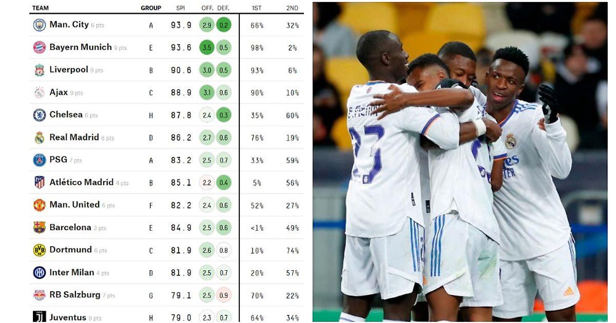 После того как были сыграны очередные матчи Лиги чемпионов Суперкомпьютер FiveThirtyEight оценил шансы команд на выход в стадию плей-офф, а также на финал и на победу.