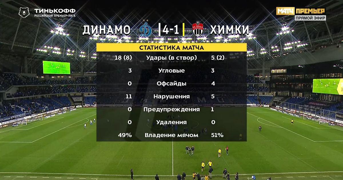 Выводы: Сразу тех, кто не понял появившиеся во время игры мысли о сдаче игры Химками. Это не Динамо задействовало «админресурс», а игроки подмосковной команды предположительно сливали своего тренера Игоря Черевченко, который начал работать в Химках как раз с матча против Динамо чуть более года назад. Начал с Динамо и скорее всего закончит с Динамо, ибо уже через два дня прошла информация о возможном расторжении контракта. И это сразу объясняет, почему таким безучастным он был на тренерской скамейке (хотя до этого были три игры на ноль, включая победу на Ахматом), а игроки играли сами по себе, чем в свою очередь объясняется их слабая игра... У нас же игра получилось добротной, но снова без «интенсива». Снова насоздавали много моментов, но реализовали только половину. Очень хорошо комбинировали по центру и использовали фланги. Наверное, это та редкая игра, когда так и должно быть против аутсайдера. Помимо трёх важных очков, хорошей игры нам также удалось избежать ненужных жёлтых карточек. Жаль только не смогли уберечь ворота Шунина от пропущенного гола. За Динамо дебютировал Ярослав Гладышев и оставил приятное впечатление. Но эта игра против слабого соперника. Теперь же Динамо ждёт выезд в Оренбург, а затем в Санкт-Петербург, где в прошедшее воскресенье Зенит устроил Спартаку, как сказал во время трансляции Шмурнов — ПлаЧедо Доминго...