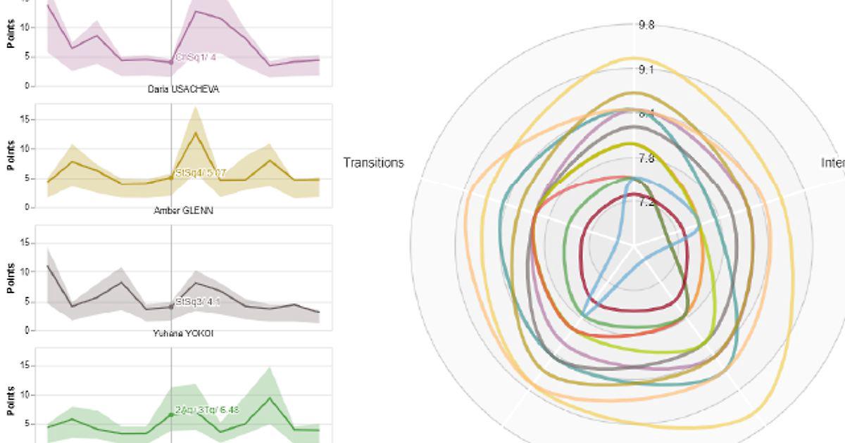 - оценки компонентов в детализации по их составляющим в виде радиальной диаграммы – отчётливо и в сравнении с остальными видны паттерны профессионализма каждого участника.