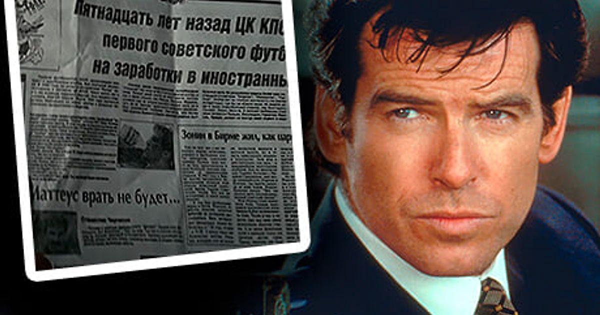 В бондиане мелькает наша спортивная газета из 1995-го, где Маттеус хвалит Черчесова и Шалимова. Мы ее прочитали!