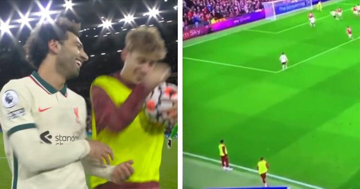 Двое игроков "красных" поделились веселым моментом после игры, когда Костас в шутку попытался украсть мяч, который египтянин нес после хет-трика против «МЮ».
