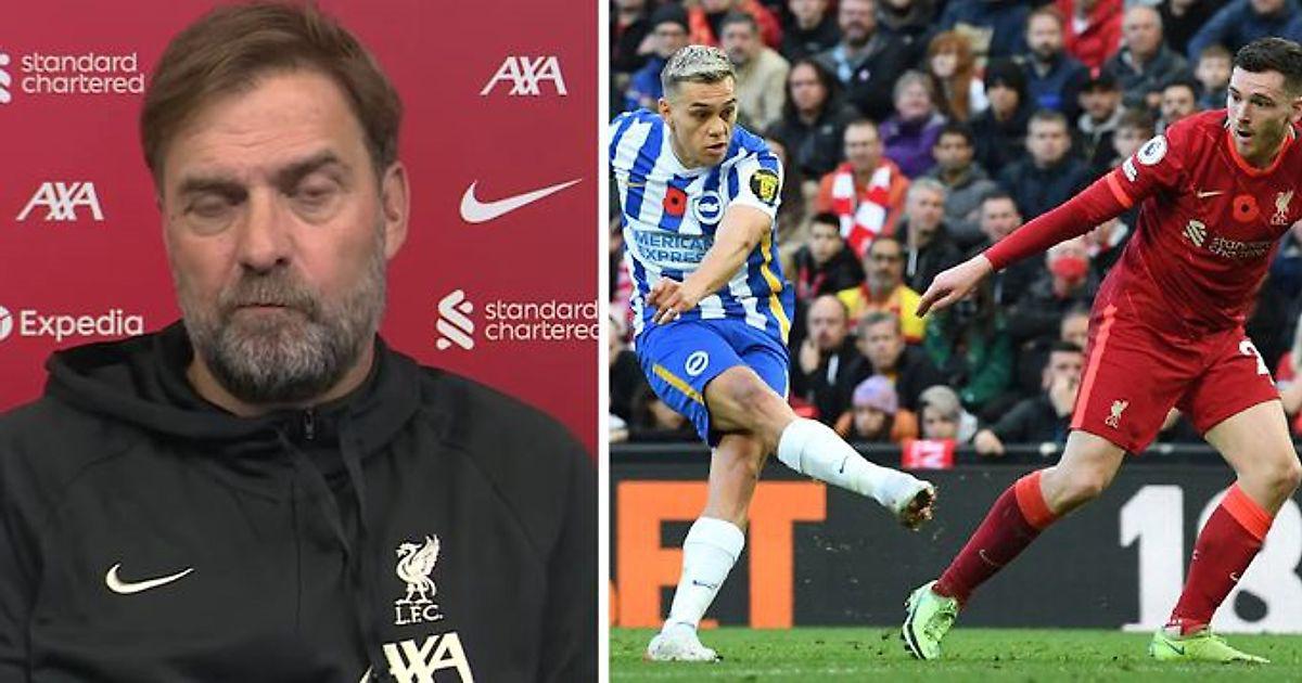 «Ливерпуль» в последнее время боролся с проблемами в обороне, и Юргена Клоппа спросили об этом после того, как «красные» дважды пропустили от «Брайтона».