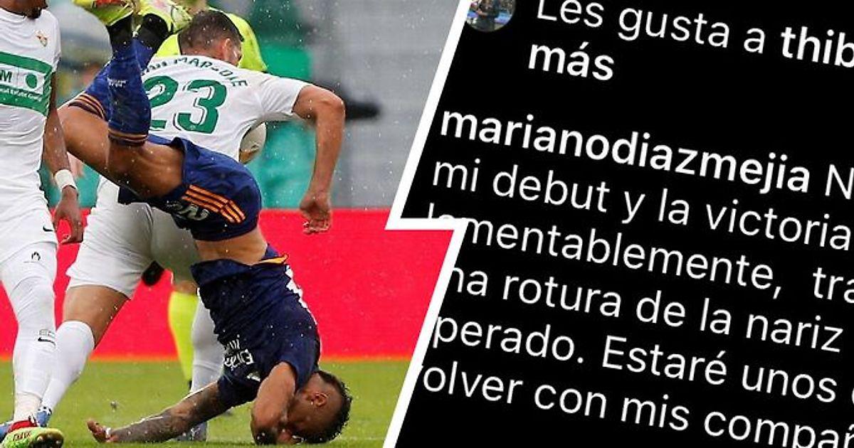 В сообщениях утверждалось, что Мариано сломал нос в матче с «Эльче». Нападающий «Реала» подтвердил это в своем Instagram.