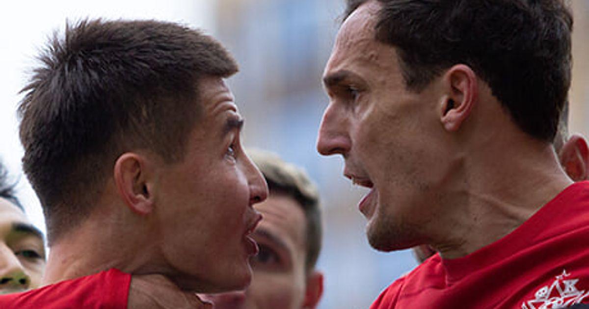 Футбольный тафгай: голкипер «Каспия» Аязбаев бросал через бедро Эбонга и ругался с Логвиненко