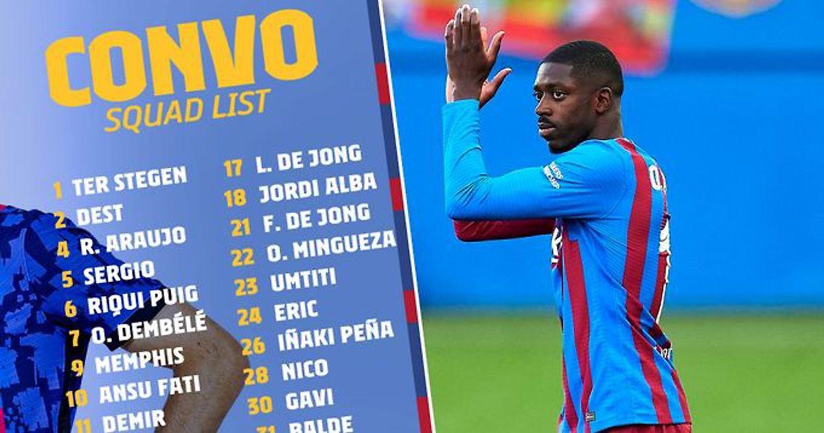 В состав команды из лазарета вернулись Ансу Фати, Усман Дембеле и Рональд Араухо, а вот Серхио Агуэро, как и ожидалось, отсутствует.