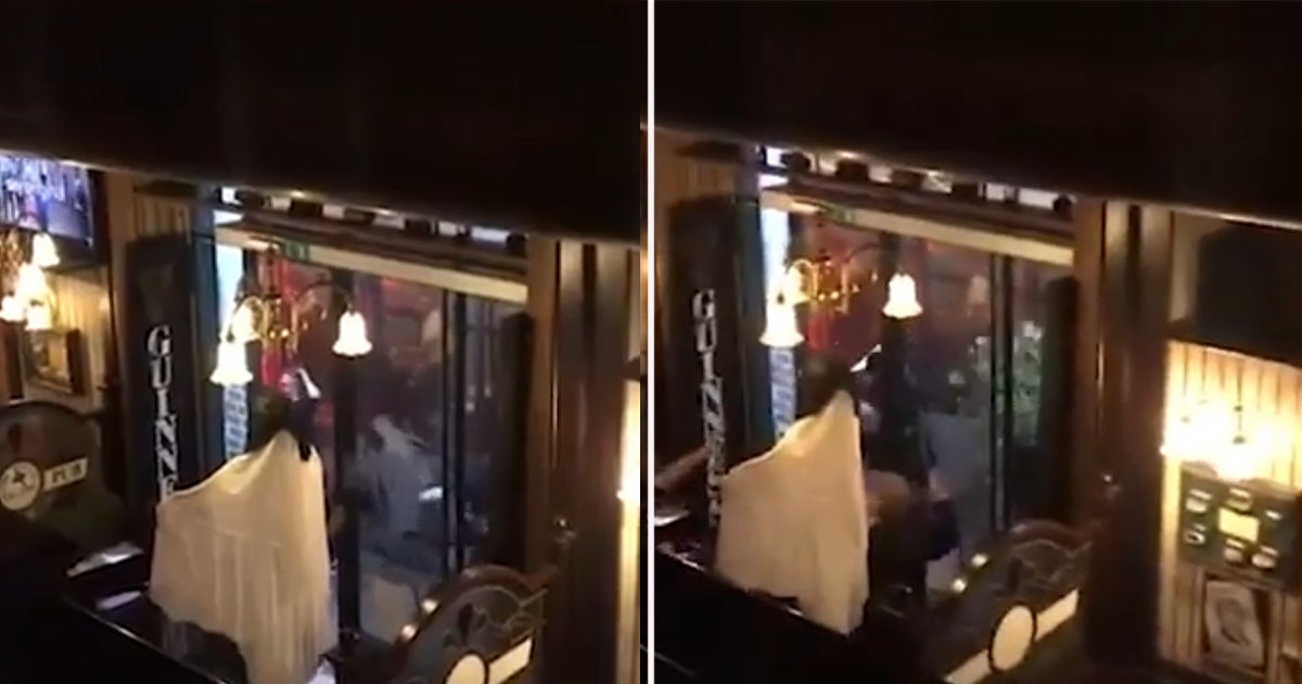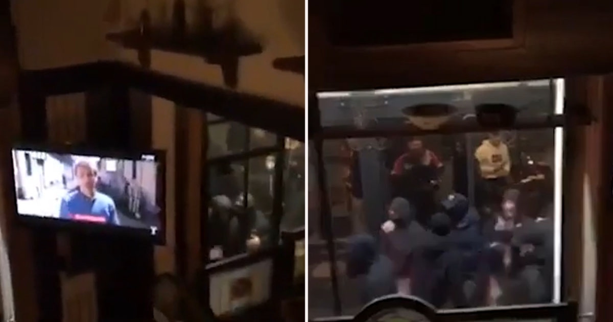 Болельщики «Красных дьяволов» развлекались в пабе, когда внезапно группа людей - с закрытыми лицами - собралась за пределами заведения.