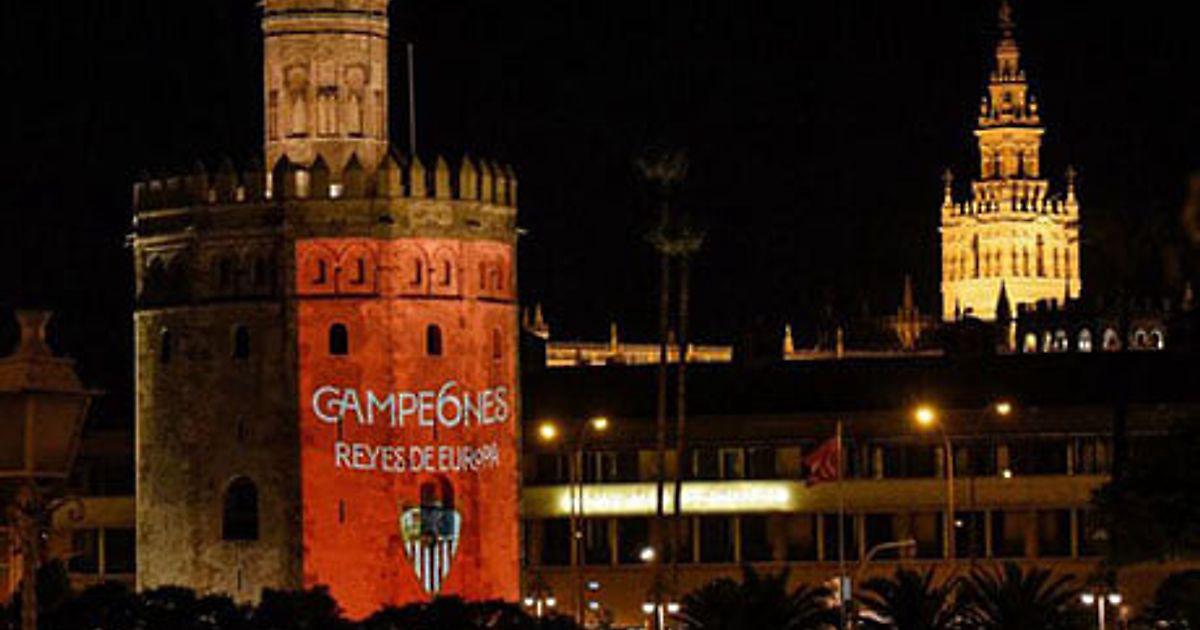 Иногда ее используют для футбольных целей. Ла Лига крутила там хайлайты к севильскому дерби, которым возвращался футбол в Испании после ковидной паузы. А в честь победы «Севильи» в Лиге Европы-2020 башню окрасили в цвета клуба.