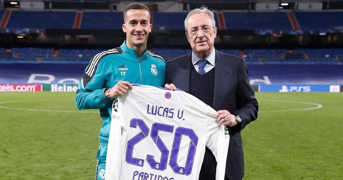 Лукас Васкес сыграл свой 250й матч в «Мадриде» против «Осасуны», но только после встречи с «Шахетром» футболист получил памятную футболку из рук Флорентино Переса.
