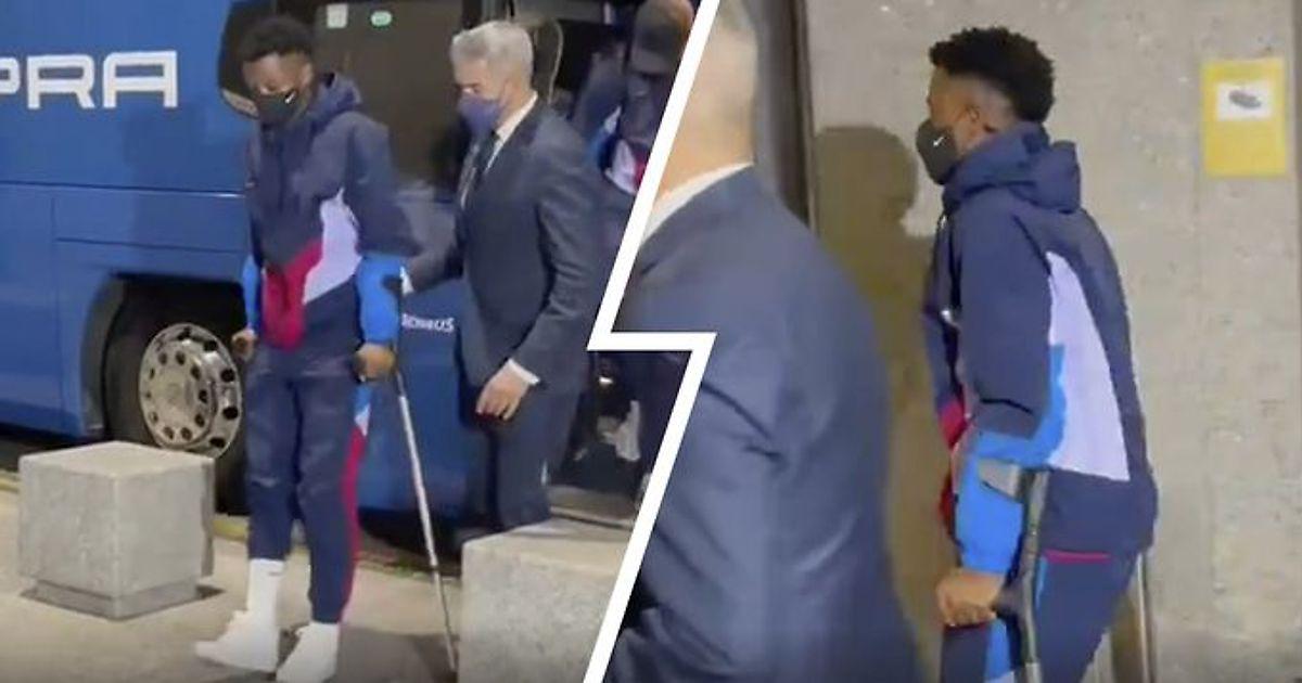 Ансу Фати прибыл в аэропорт Виго на костылях.