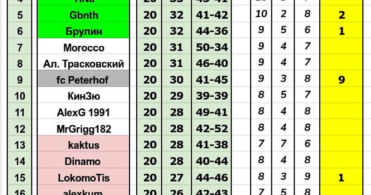 Чемпионат. Сезон 1 (август-декабрь). В гугл доке