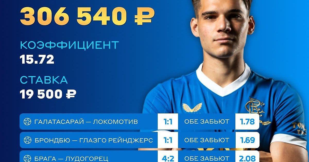 В прошлый четверг он собрал экспресс из пяти событий 4-го тура группового этапа Лиги Европы. В каждом матче наш герой выбрал ставку «обе забьют». Общий коэффициент получился 15.72, а сумма ставки — 19 500 рублей.