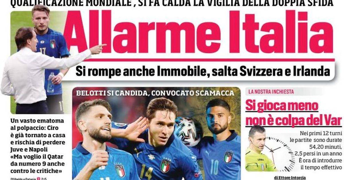 Квалификация Мундиаля, разогрев в преддверии двойной схватки. Сломался также Иммобиле, он пропустит матчи со Швейцарией и Ирландией. Обширная гематома голени: Чиро уже вернулся домой и рискует пропустить матчи с «Юве» и «Наполи». «Но хочу в Катар с 9-ым номером также против критики».