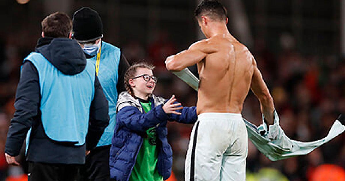 Стюарды уже были готовы увести ее с поля, но Роналду ее тепло обнял и отдал футболку.