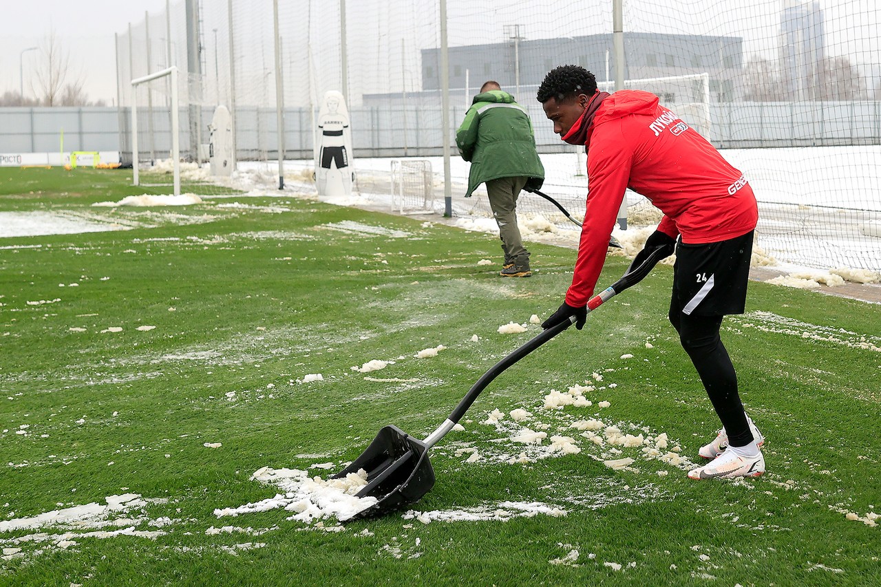 Остальные игроки находятся в распоряжении Руя Витории. В Москве выпал первый снег, и перед сегодняшней тренировкой спартаковцы помогли персоналу базы расчистить поле.