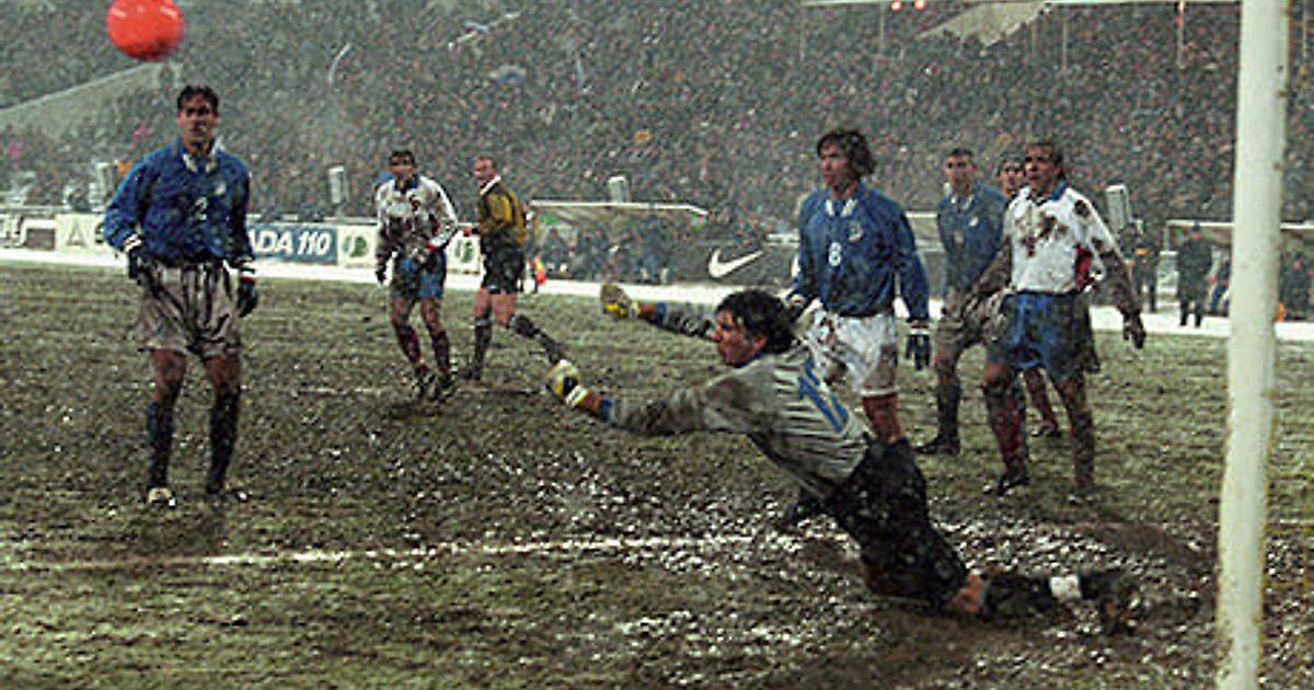 В 1997-м уступили Италии: мучались на заснеженном «Динамо», а судья не поставил два пенальти в ворота итальянцев
