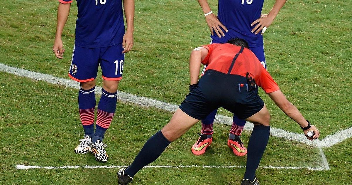Исчезающий спрей в мировом футболе появился в 2014 году – во время ЧМ в Бразилии. Сейчас его используют даже в низших лигах по всему миру, а ведь до 2014-го это была региональная южноамериканская история: там судьи еще за девяностые так устали бороться с игроками, которые двигались в стенке или переставляли мяч, что КОНМЕБОЛ (конфедерация футбола Южной Америки) придумала использовать исчезающий спрей.