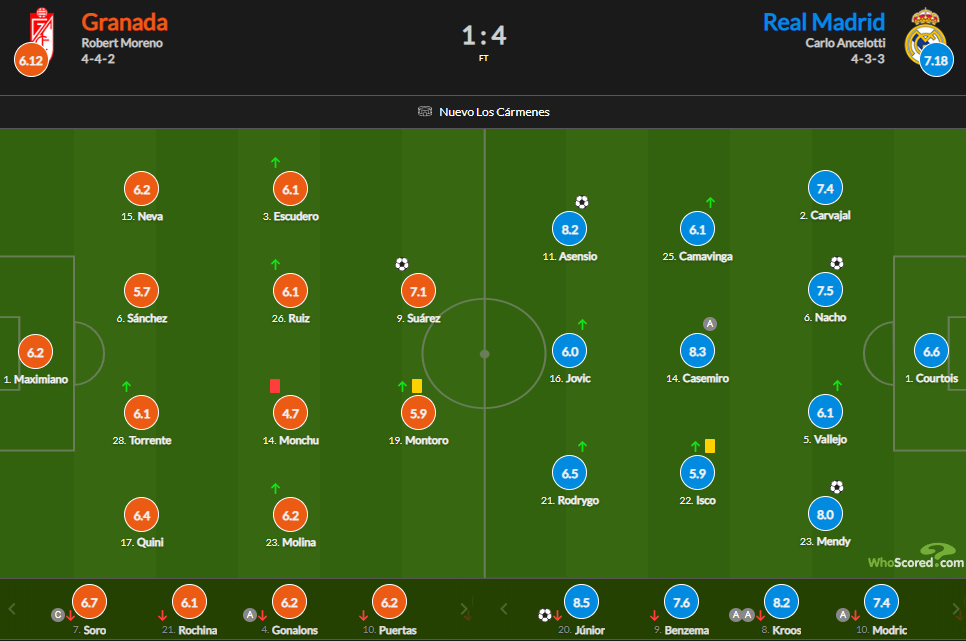 Винисиус - лучший. Оценки «Реала» за матч с «Гранадой»