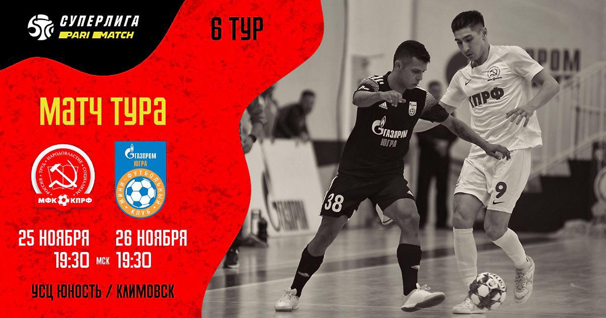 Центральным противостоянием 6-го тура Париматч-Суперлиги станут поединки между МФК "КПРФ" и МФК "Газпром-Югра".