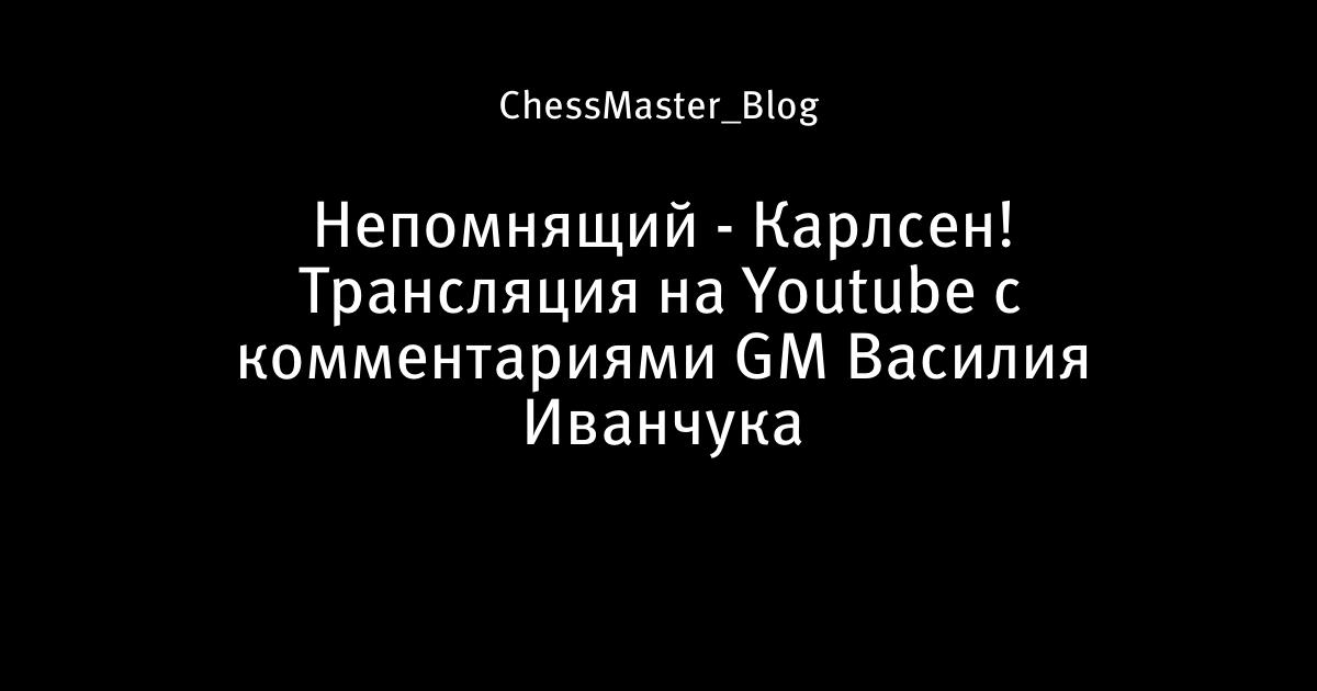 Π£ΠΆΠ΅ ΡΠ΅Π³ΠΎΠ΄Π½Ρ, 26 Π½ΠΎΡΠ±ΡΡ Π½Π°ΡΠΈΠ½Π°Π΅ΡΡΡ ΠΌΠ°ΡΡ Π·Π° ΡΠ°Ρ ΠΌΠ°ΡΠ½ΡΡ ΠΊΠΎΡΠΎΠ½Ρ ΠΌΠ΅ΠΆΠ΄Ρ Π―Π½ΠΎΠΌ ΠΠ΅ΠΏΠΎΠΌΠ½ΡΡΠΈΠΌ ΠΈ ΠΠ°Π³Π½ΡΡΠΎΠΌ ΠΠ°ΡΠ»ΡΠ΅Π½ΠΎΠΌ. Π‘ΠΌΠΎΡΡΠ΅ΡΡ ΠΏΡΡΠΌΡΡ ΡΡΠ°Π½ΡΠ»ΡΡΠΈΡ ΠΏΠ΅ΡΠ²ΠΎΠΉ ΠΏΠ°ΡΡΠΈΠΈ Ρ ΠΊΠΎΠΌΠΌΠ΅Π½ΡΠ°ΡΠΈΡΠΌΠΈ GM ΠΠ°ΡΠΈΠ»ΠΈΡ ΠΠ²Π°Π½ΡΡΠΊΠ°, GM Π€Π°ΡΡΡΡ Π° ΠΠΌΠΎΠ½Π°ΡΠΎΠ²Π° ΠΈ FM ΠΠ°ΠΊΡΠΈΠΌΠ° ΠΠΌΠ°ΡΠΈΠ΅Π²Π° ΠΌΠΎΠΆΠ½ΠΎ Π½Π° Yotube-ΠΊΠ°Π½Π°Π»Π΅ ChessMaster.