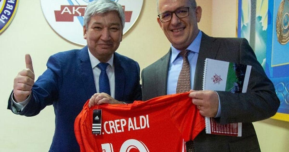 Кездесу соңында Ерлан Айтбайұлы Никола Крепальди мырзаға «Ақтөбенің» атаулы жейдесін сыйға тартты.