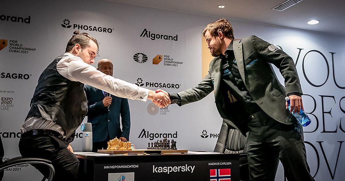 Ян Непомнящий начал противостояние с хода е2-е4, Карлсен ответил е7-е5 – старая классика для матчей на первенство мира.