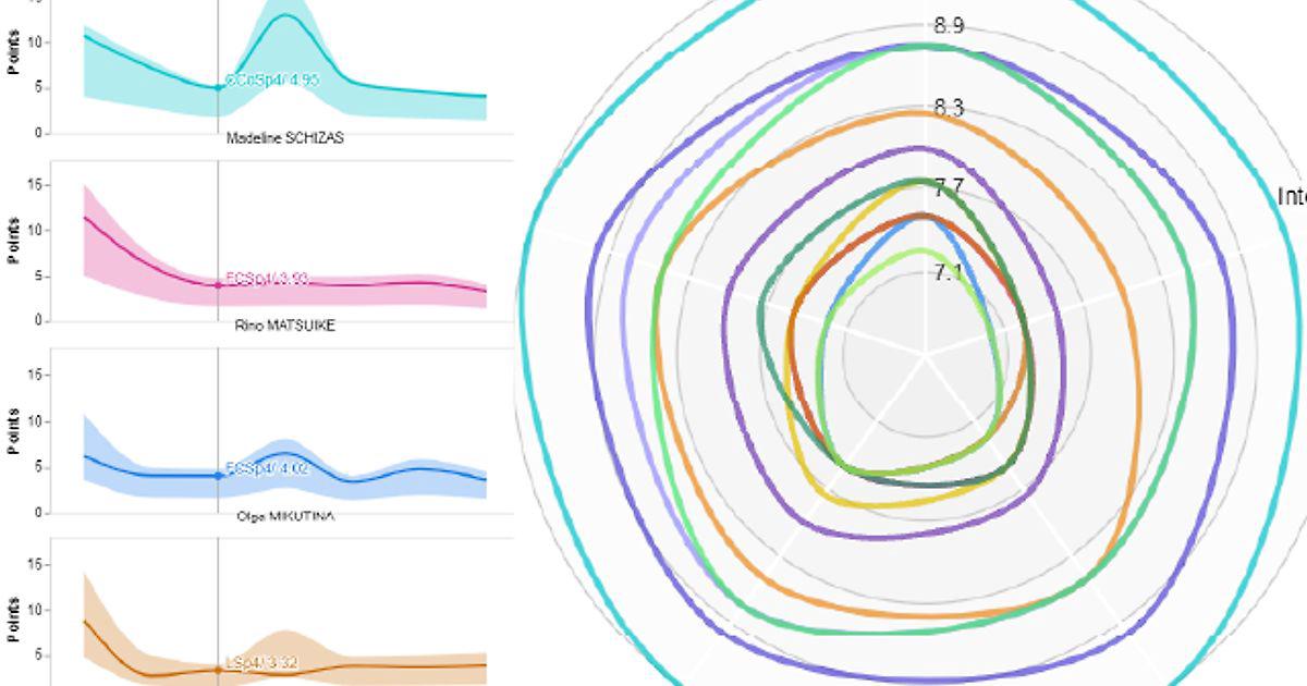 - оценки компонентов в детализации по их составляющим в виде радиальной диаграммы – отчётливо и в сравнении с остальными видны паттерны профессионализма каждого участника.