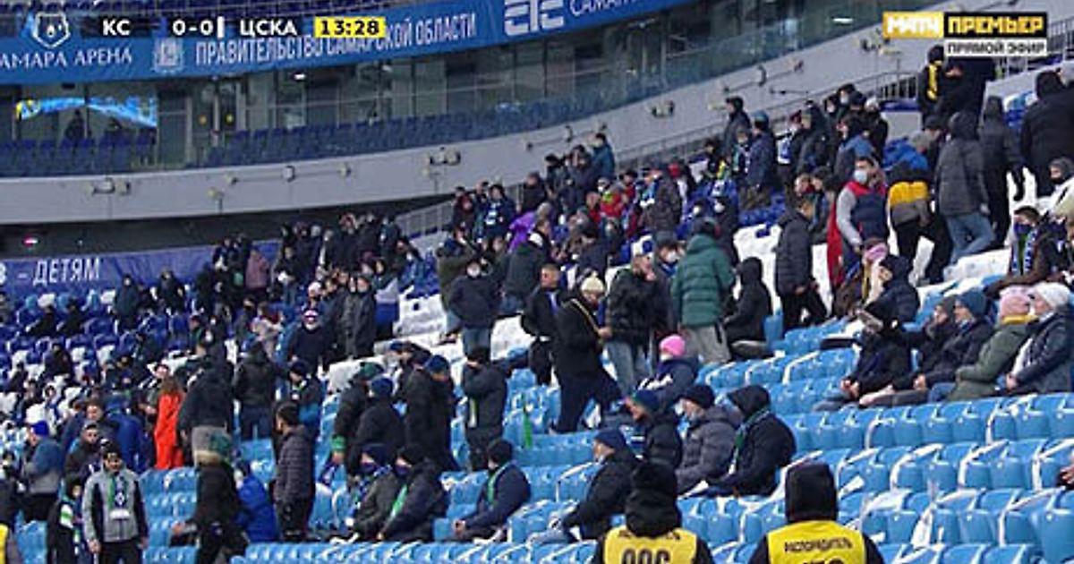Александр Неценко: Дим, смотри. Болельщики «Крыльев Советов» покидают по договоренности свой фан-сектор. Они анонсировали свой уход на 14-й минуте этого матча. Всем известно, что именно от болельщиков ЦСКА была задумана акция среди фанатского движения. Эта ситуация была связана с тем, что происходило после игры ЦСКА – «Зенит». Использование пиротехники фанатами ЦСКА, последующие задержания. Этой историей заинтересовалась и РПЛ. 7 декабря будет проведено расширенное заседание комитета по безопасности и работе с болельщиками. Все эти решения будут уже рассмотрены КДК РФС 9 числа.