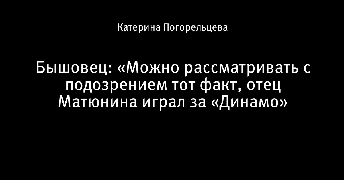 Бышовец: «Можно рассматривать с подозрением тот факт, отец Матюнина играл за «Динамо»