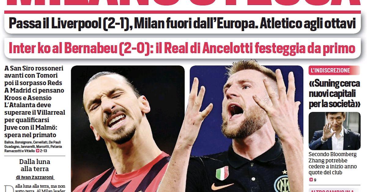 Поражения «Милана» и «Интера», а также сегодняшние матчи «Аталанты» и «Ювентуса» в Лиге Чемпионов – в утреннем обзоре заголовков итальянских спортивных изданий в блоге «В гостях у Кальчо».