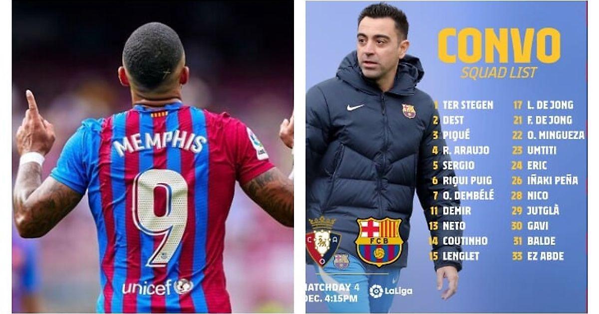 Без Мемфиса и Альбы: заявка на матч с «Осасуной»