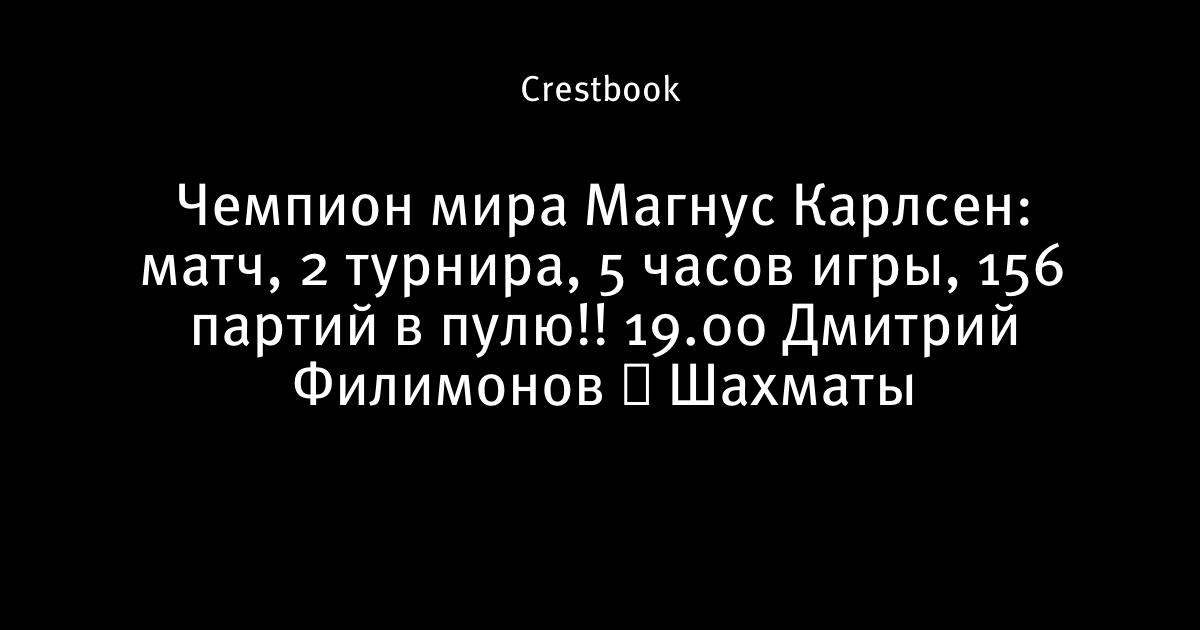 Чемпион мира Магнус Карлсен: матч, 2 турнира, 5 часов игры, 156 партий в пулю!! ⏰ 19.00 🎤 Дмитрий Филимонов ♛ Шахматы