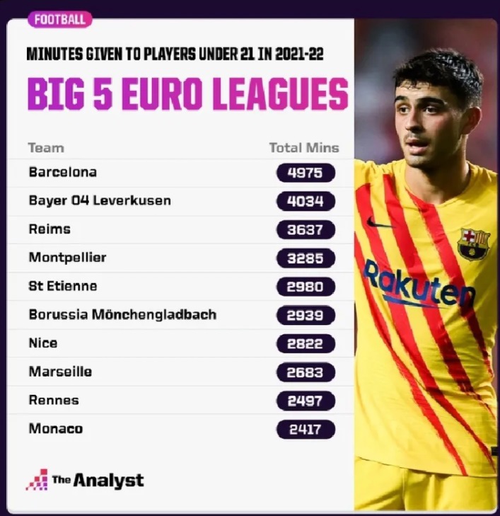 Ни одна команда в 5 лигах не использует молодежь так часто, как «Барселона»», сообщает Opta.